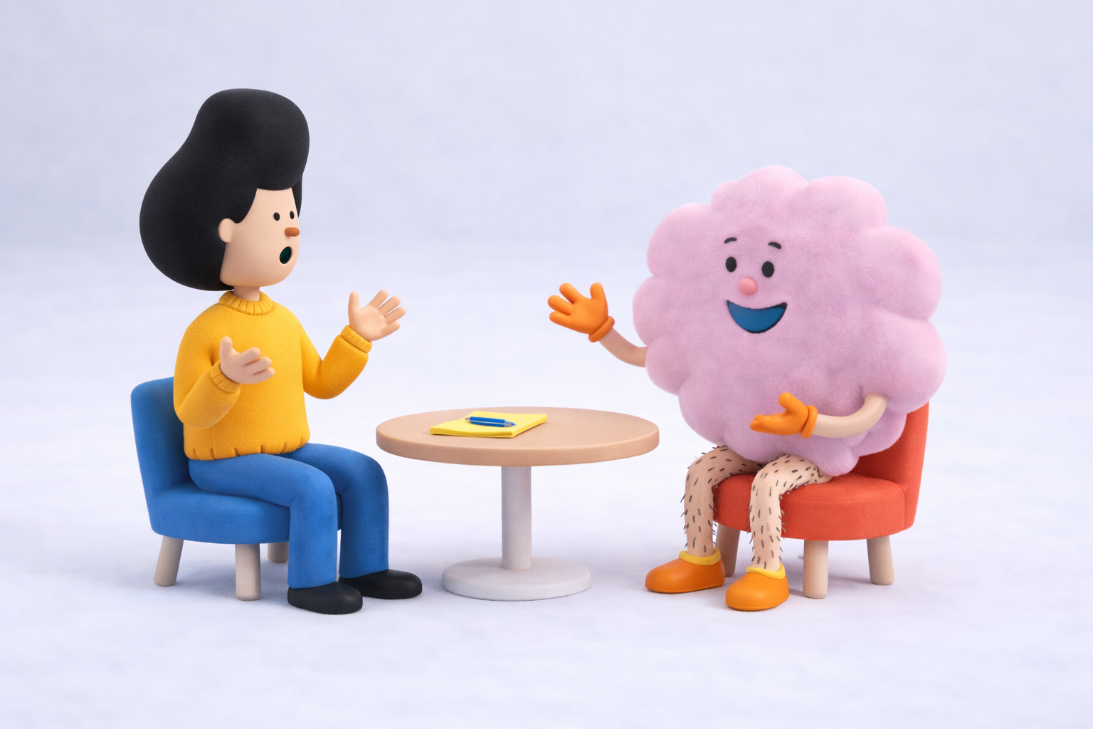 もんももんの弱点はね、すぐ考えすぎるところ。SNSで人と比べて落ち込んじゃうところ。ほんとは行きたくない、やりたくないことも、頼まれたら断れないところ。夜になると急に将来が不安になるところなんだ。