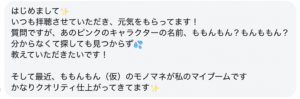 教えていただきたいです! そして最近、ももんもん(仮)のモノマネが私のマイブームです かなりクオリティ仕上がってきてます